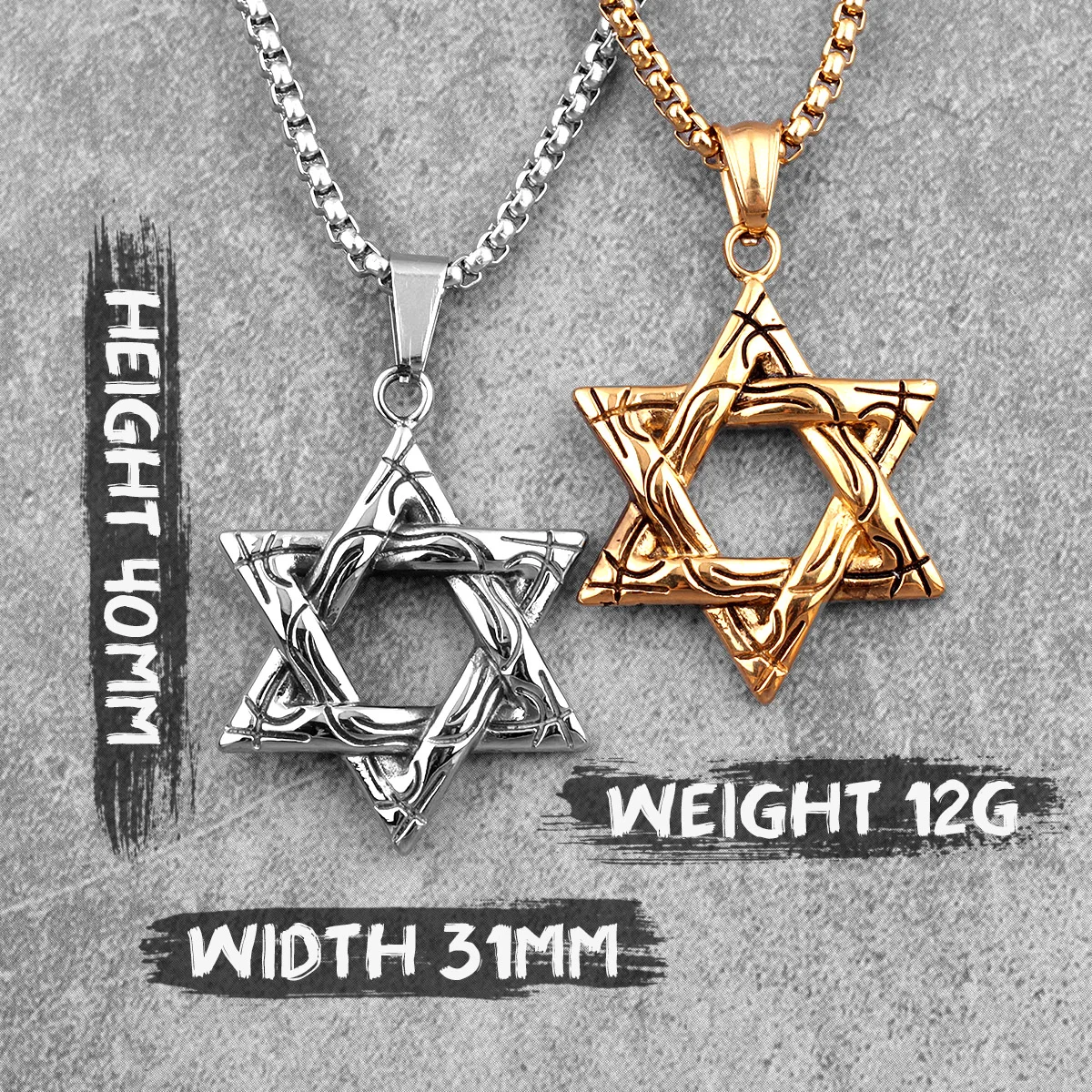 יהדות הקסגרמה זהב נירוסטה גברים שרשראות תליוני שרשרת פאנק עבור החבר זכר תכשיטי יצירתיות מתנה סיטונאי
