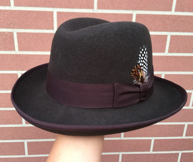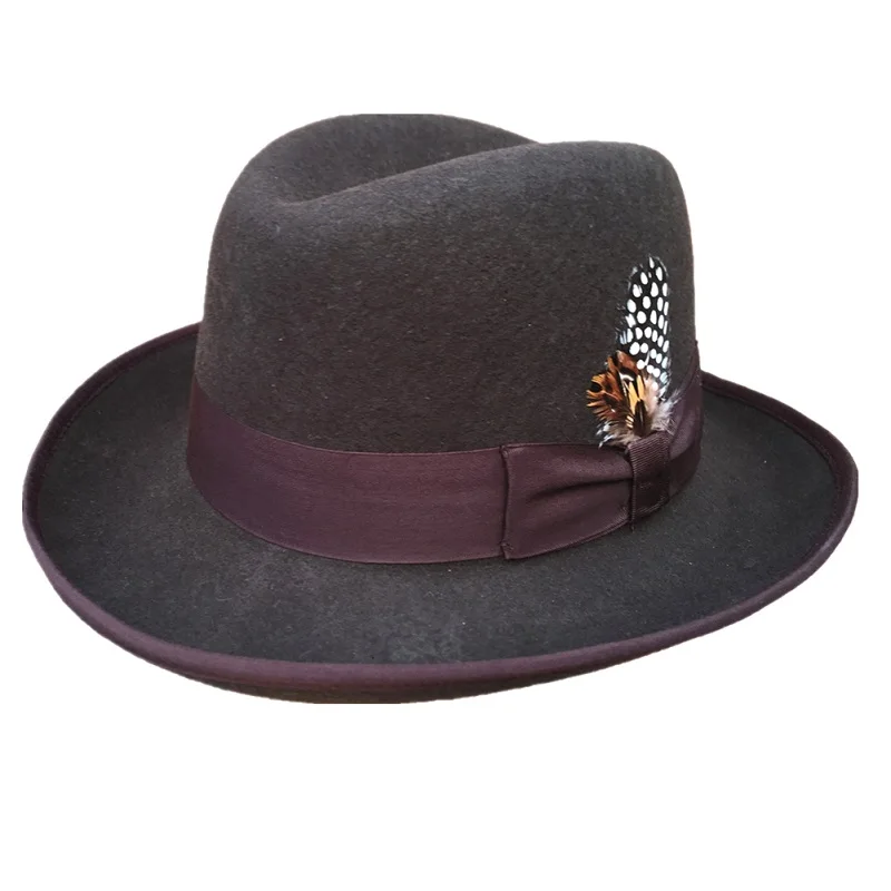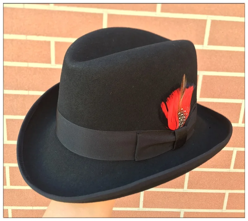 Classic Wool Felt Homburg Godfather Fedora Bowler Hat For Men Women