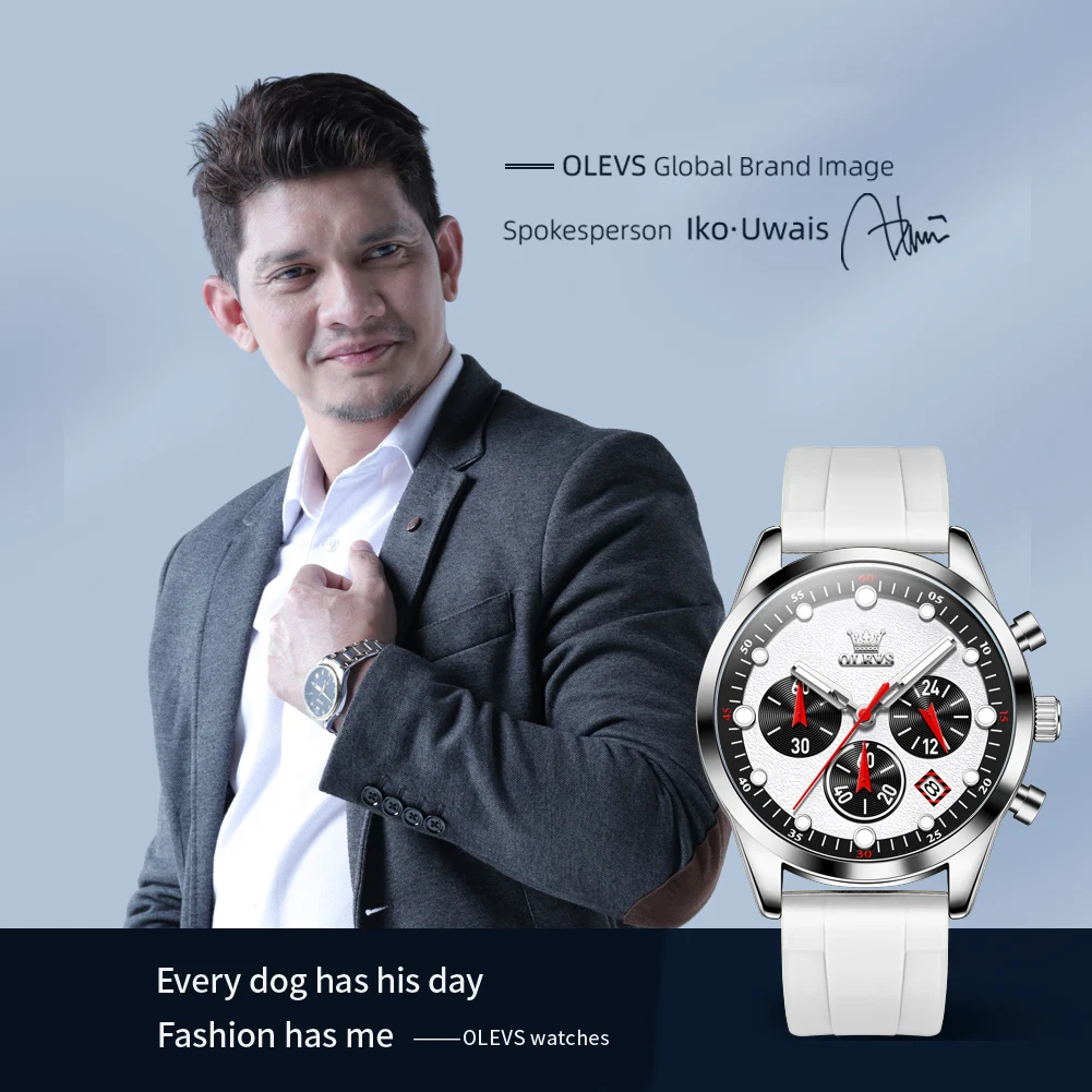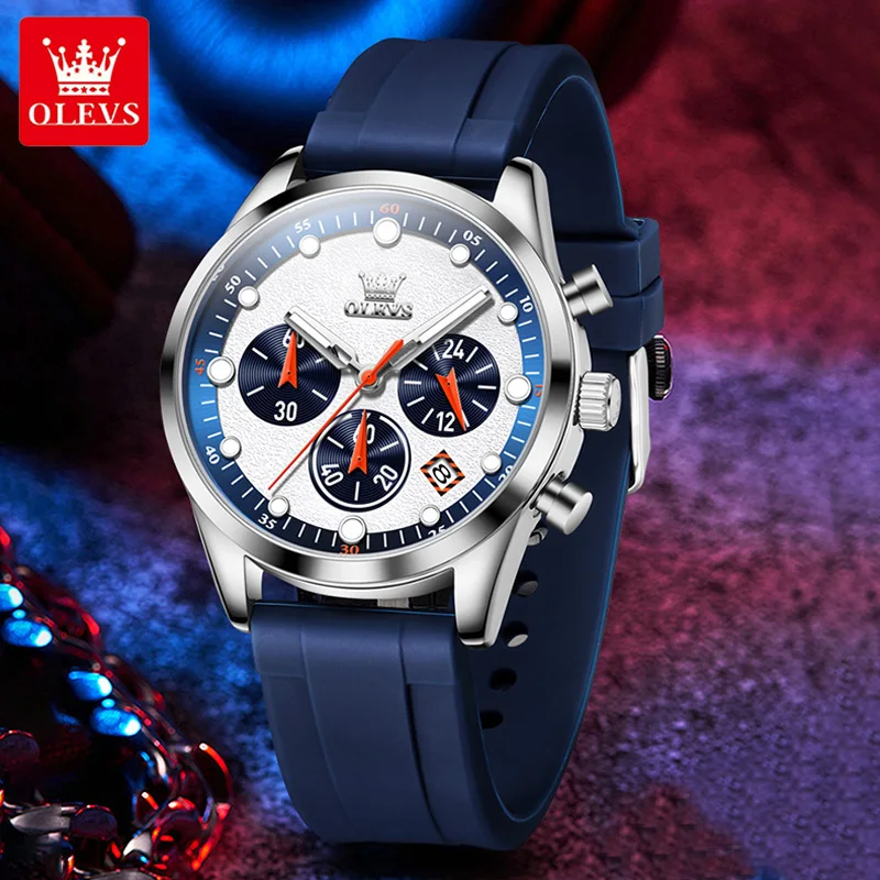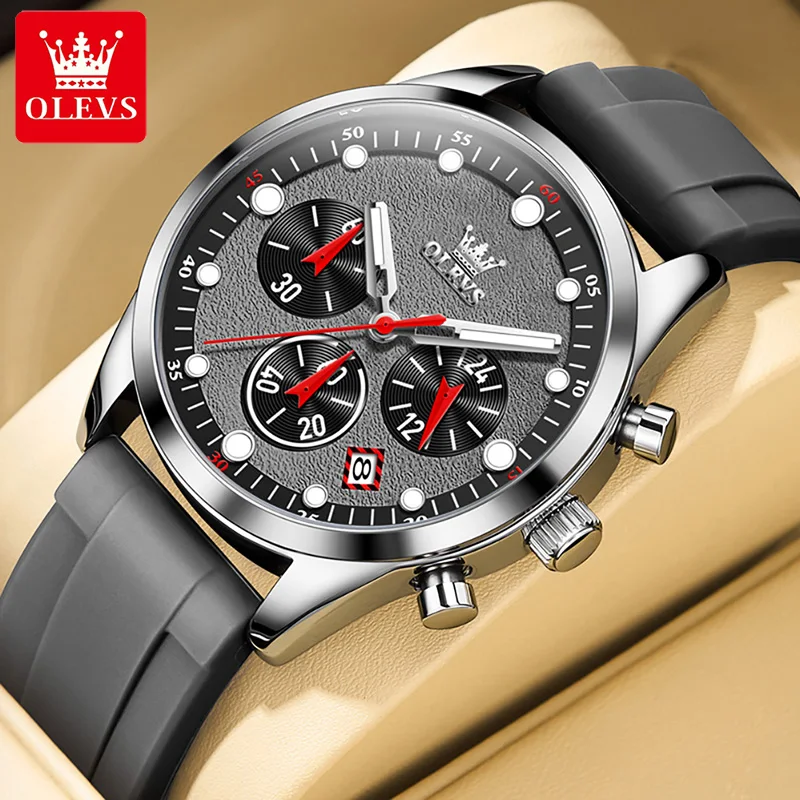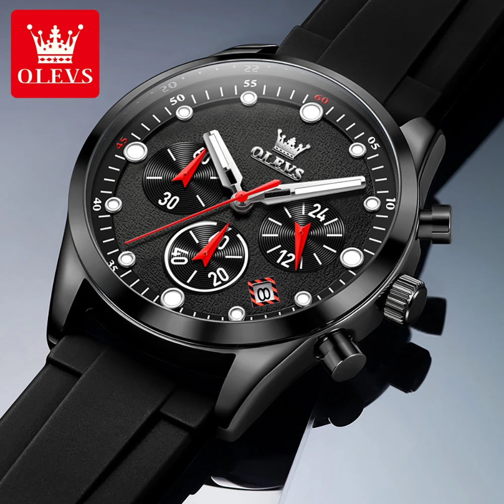 Olevs 5602 רצועת גומי גברים שעונים כרונוגרף רב תכליתיים תאריך עמיד למים בהיר ספורט אופנה גברים wristwatch קוורץ